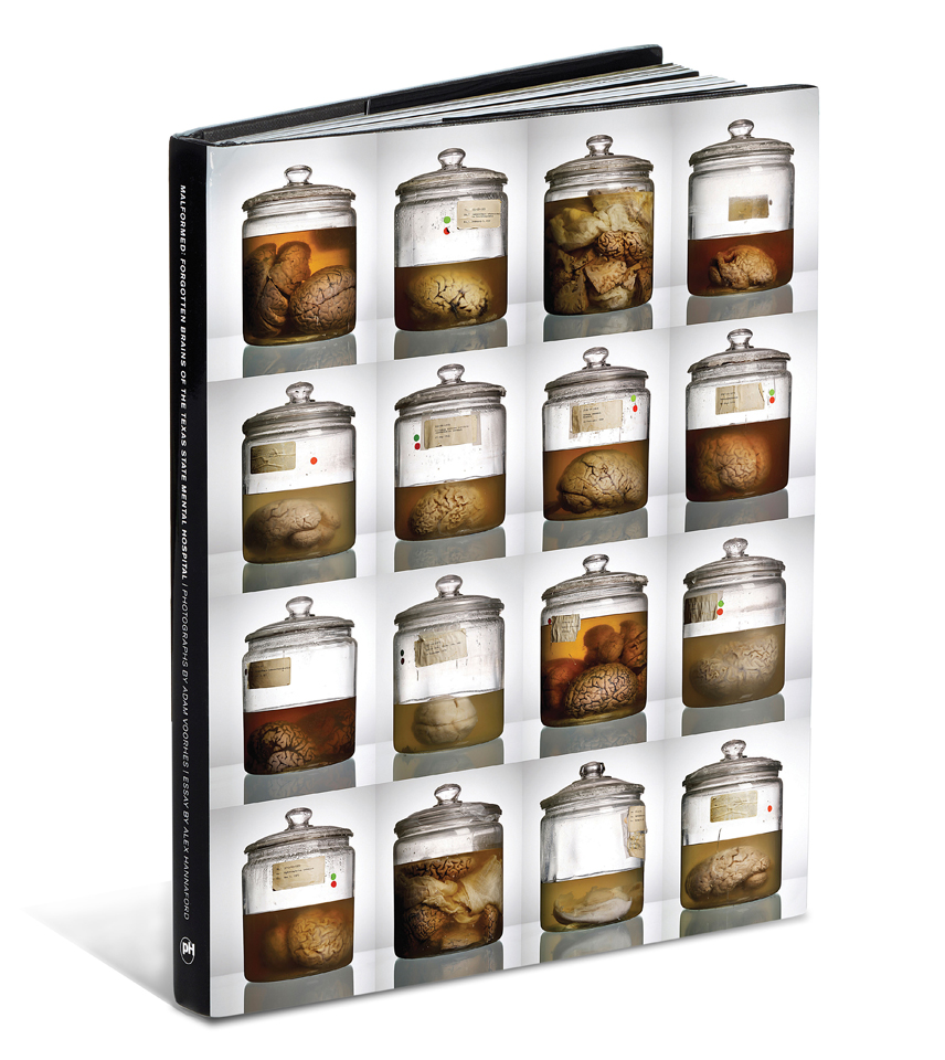 The unusual book features still-life images of brains from the Texas State Mental Hospital.