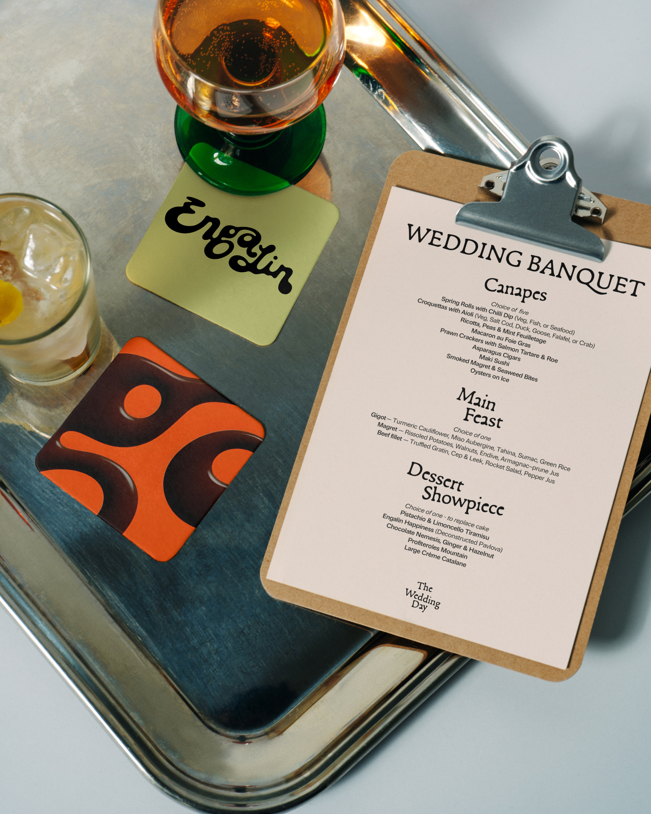The challenge was to design an identity that moves as fluidly as the experience itself. It needed to be Chateau-like and French in its foundations, yet expressive, generous and full of character. The identity had to act as a unifying force, tying together the many moods of Engalin, from quiet refinement to exuberant celebration.