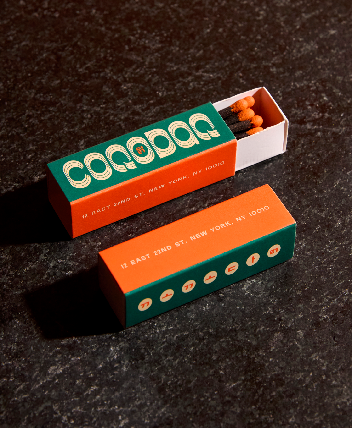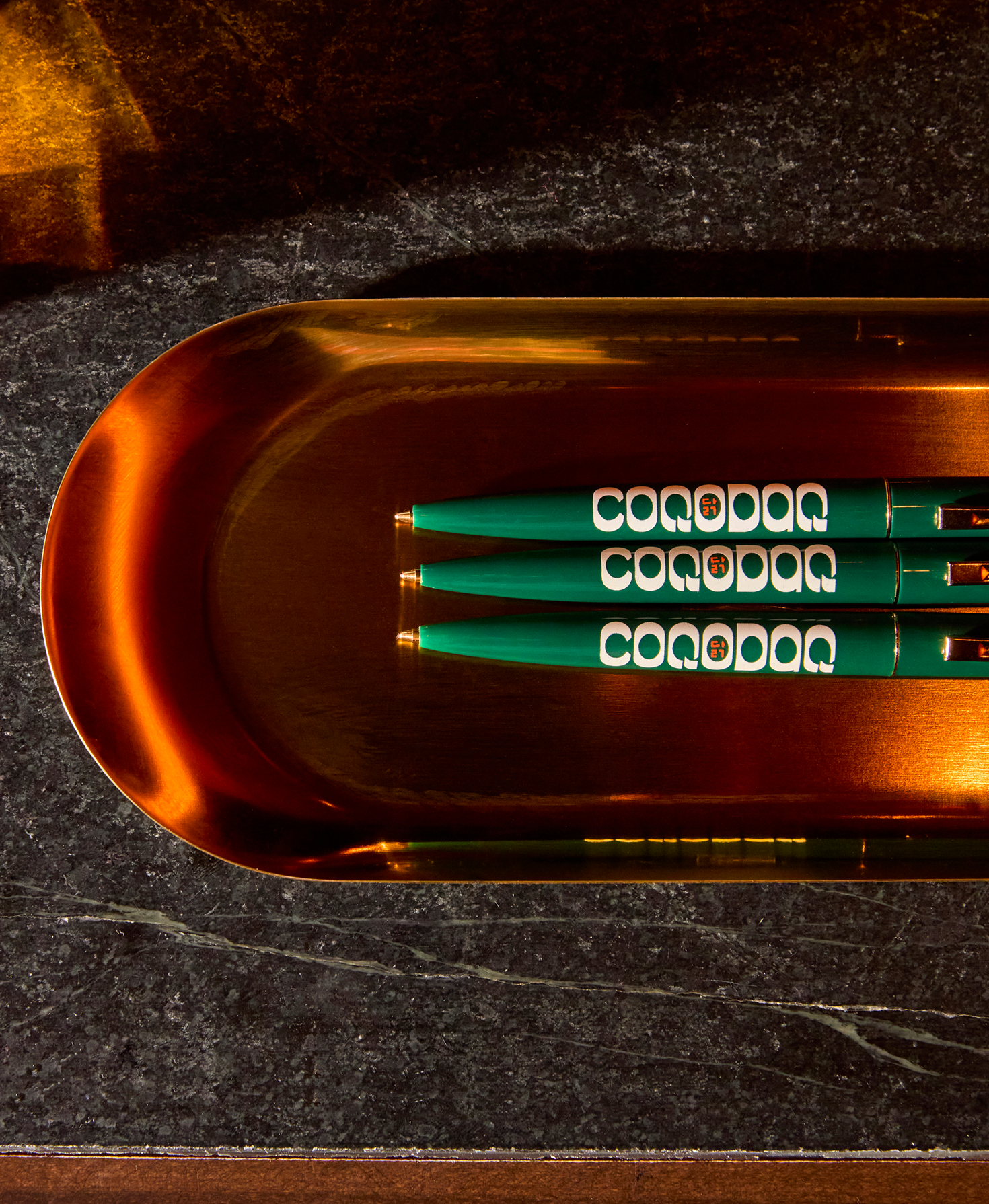 Pentagram’s Emily Oberman and team designed Coqodaq’s brand identity, drawing on the vernacular of Korean and American chicken joints with an elevated twist. The identity informed the luxe interior design by Rockwell Group and extends across messaging, the website, and environmental graphics––amplifying the restaurant’s playful, indulgent experience.