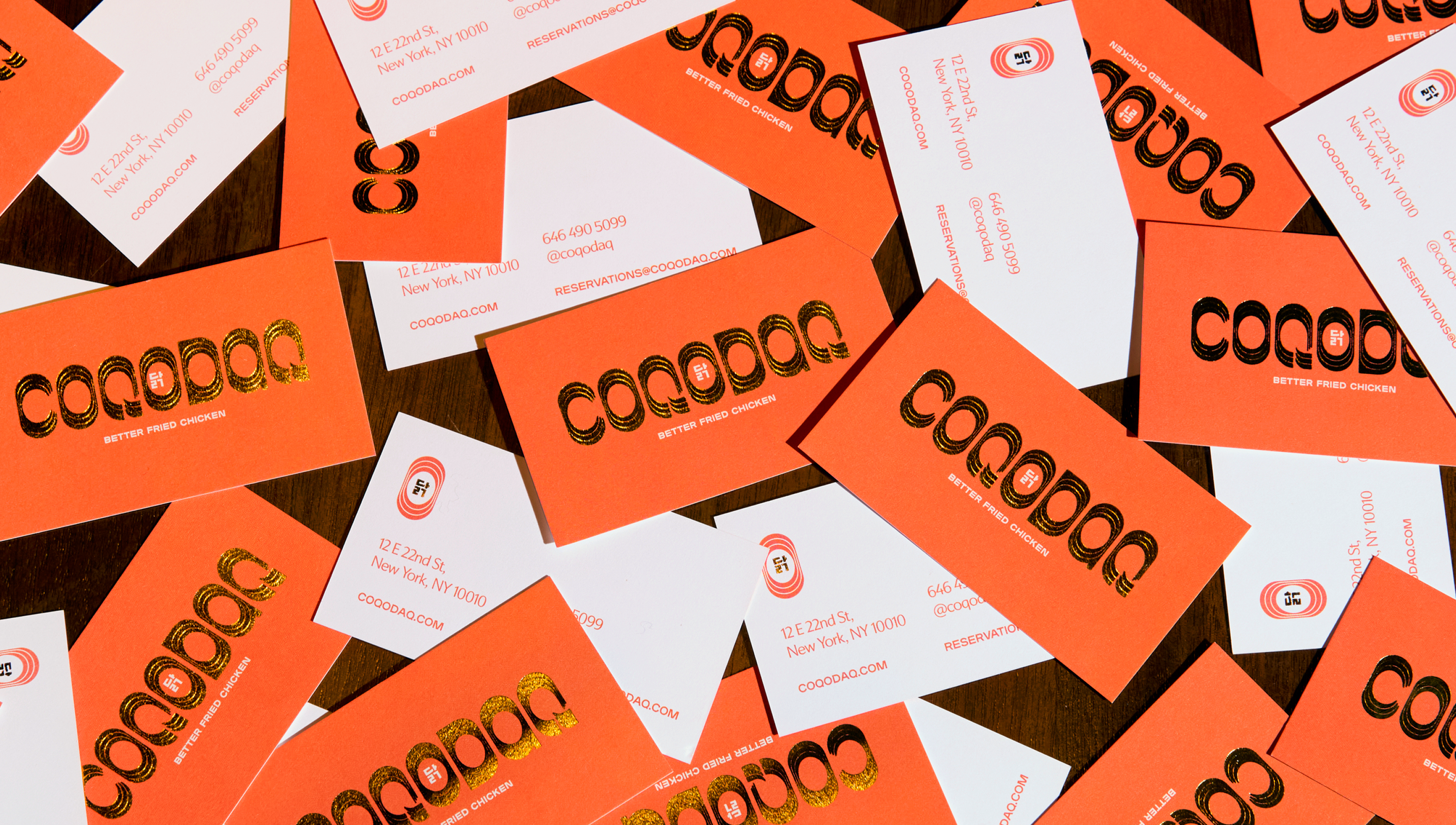 Emily Oberman and team designed Coqodaq’s brand identity, drawing on the vernacular of Korean and American chicken joints with an elevated twist.