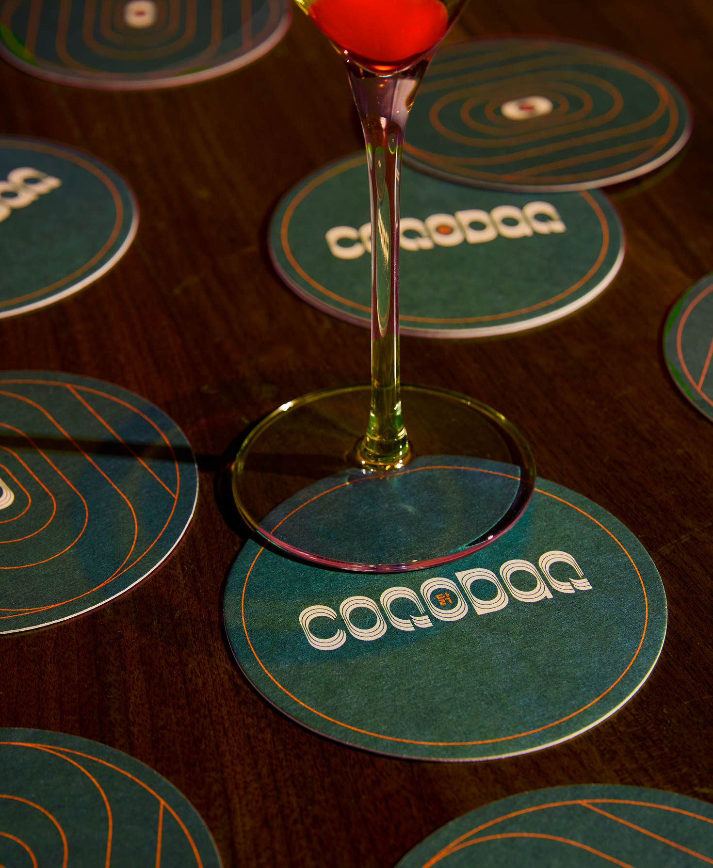 The Coqodaq logotype uses expressive custom lettering to set the tone––bold, playful, and refined. Echoing the identity of Cote, the “O” contains a Korean character––here "닭," meaning "chicken”––and doubles as a symbol for the restaurant. Where Cote’s “O” holds a flower, Coqodaq’s becomes an egg, with concentric circles and radiating lines reinforcing the shared visual language.