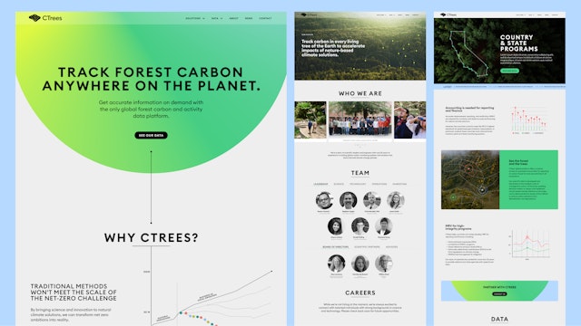 Pentagram’s Giorgia Lupi and team were invited to help bring the CTrees mission to life through a complete redesign of their digital presence. The challenge was twofold: the team had to evolve the organization’s existing brand identity as well as find a new visual language for representing the complexity and beauty of CTrees’ work - a portfolio that encompasses data collection, mapping, and climate analysis all wrapped into one.