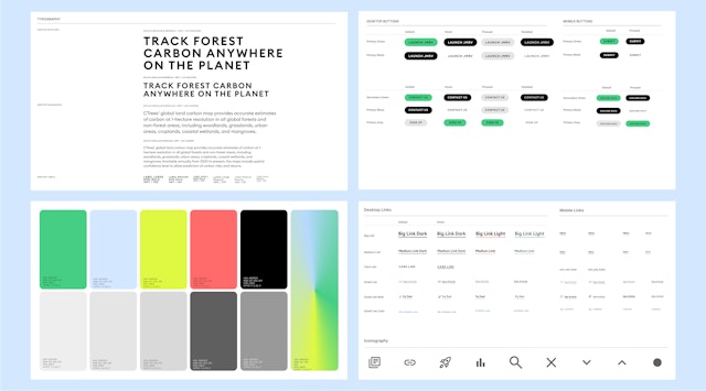 Beyond the home page, Pentagram worked closely with the CTrees team to develop a larger design system that mirrors the poetic precision of data with the striking beauty of nature: forest canopies traced with dotted connections to map out the global forest ecosystem, and satellite textures paired with clean infographics that breakdown the organization’s distinctive product offering in the context of the larger climate technology landscape. Custom graphic elements – such as orbital data rings, node constellations, and radial overlays – all echo the planetary scope of CTrees’ efforts.
