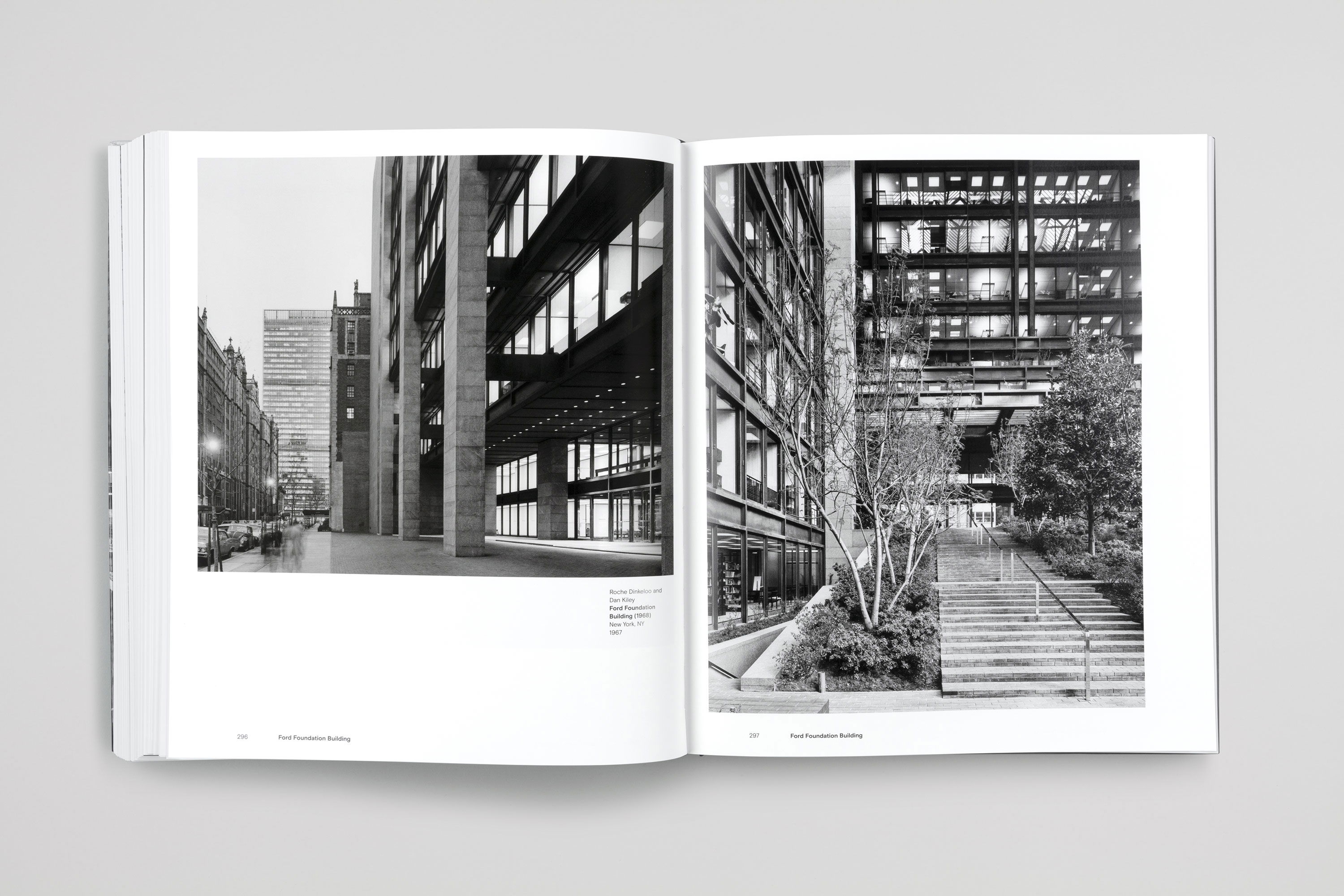 Pentagram collaborated closely on the book with Serraino and Erica Stoller, the photographer’s daughter, who now directs Esto, the architectural photo agency he founded in 1966. Stoller’s work has been featured in other monographs, but this is one of the first to explore the breadth of his largely unseen archive of more than 50,000 images. The book is loosely organized into four chronological sections, each opening with a biographical narrative that segues into a portfolio of beautifully reproduced duotone black-and-white and color images.