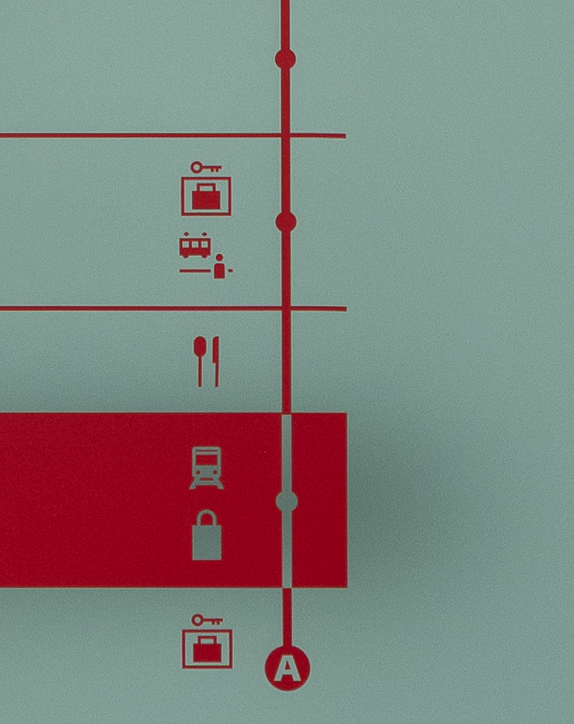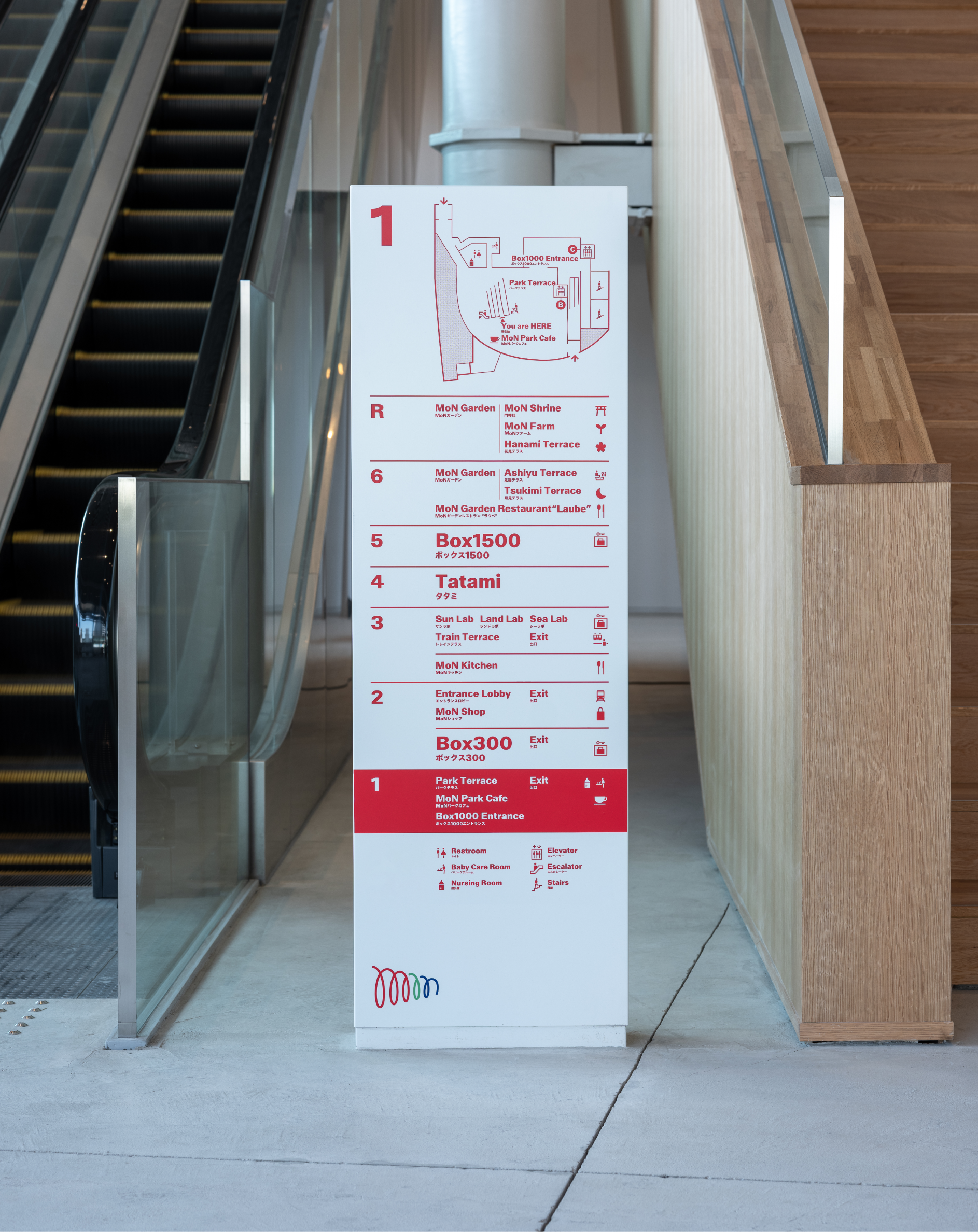 Typography runs bilingual throughout, treating Japanese and English with equal weight — from display scale headlines down to caption and wayfinding detail. The colour palette draws on natural cycles: three brand colours of sun, land and water — forces that shape every coastline, every city, every human settlement; colours that give MoN’s palette both universal resonance and a genuine sense of place in Takanawa.