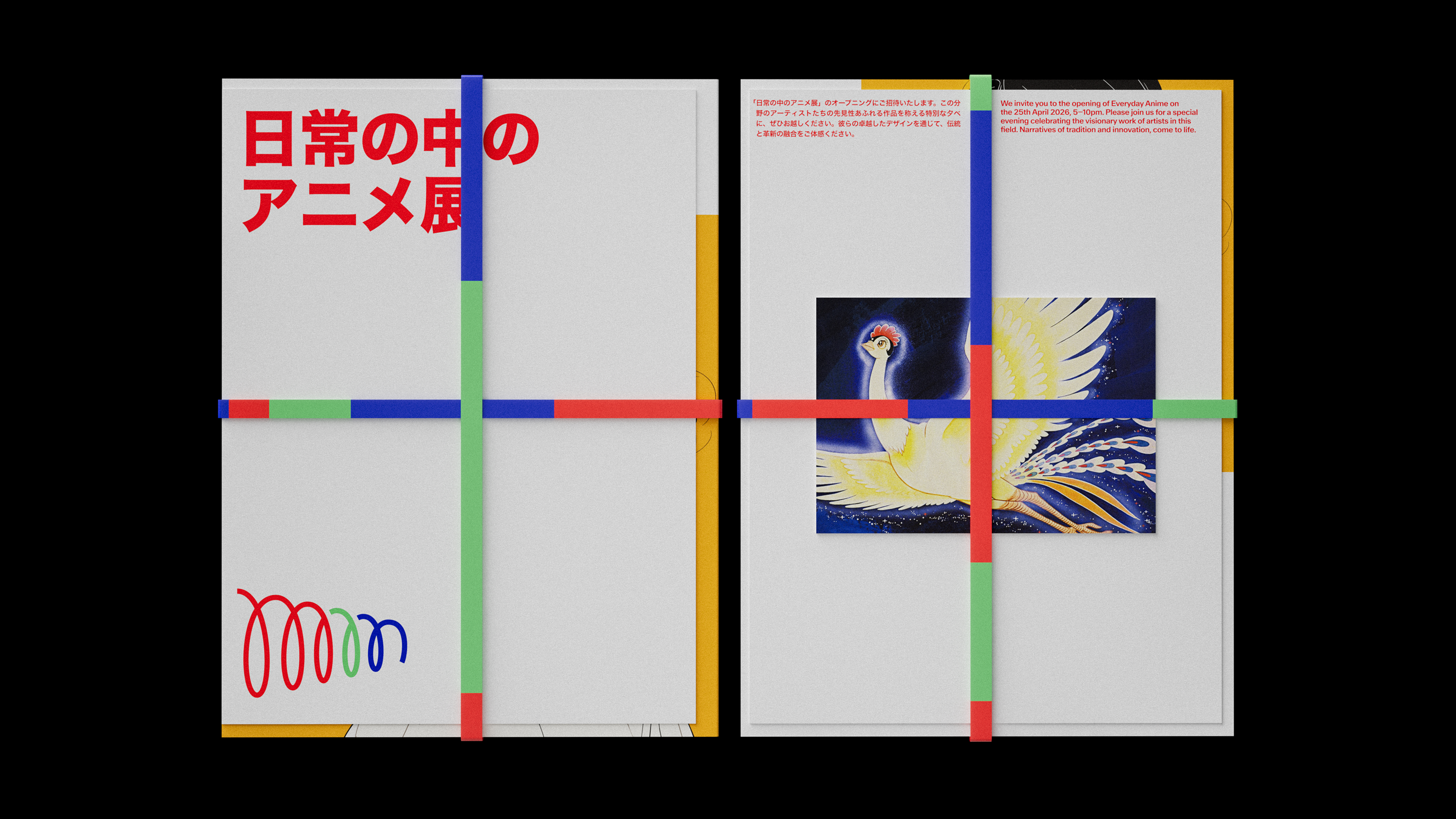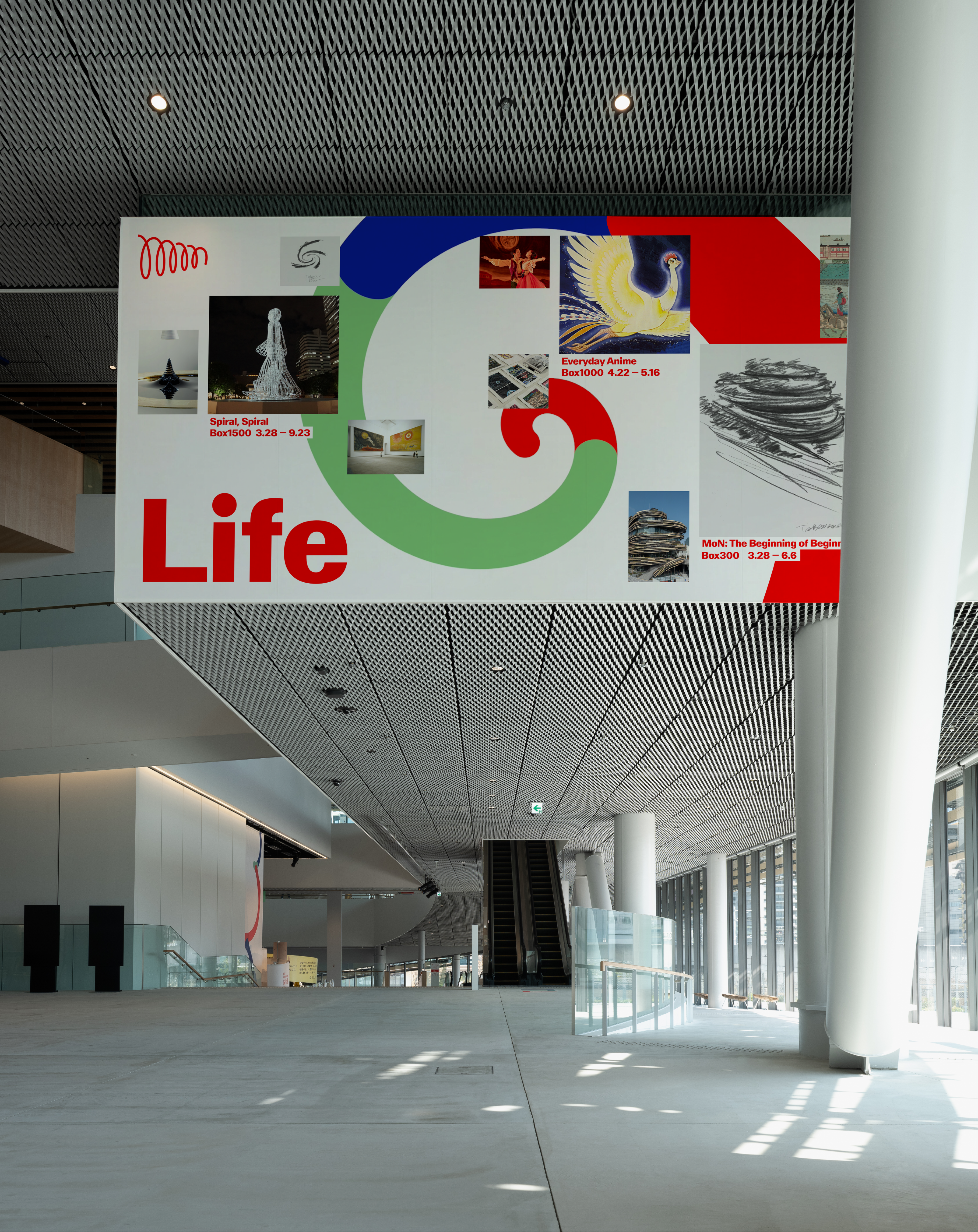 The brief asked for something that could hold an enormous cultural range — from Tezuka's Phoenix to traditional rakugo storytelling, from ballet to electronica — without flattening it into a generic "arts destination". The starting point was already embedded in MoN's own thinking: a plan for circular curation. Working from that foundation, Pentagram developed the strategic idea of dimensional time — the understanding that while we experience time as linear, ideas, traditions and culture don't behave that way. They recur, get reinterpreted, loop back to find new meaning in a different age.