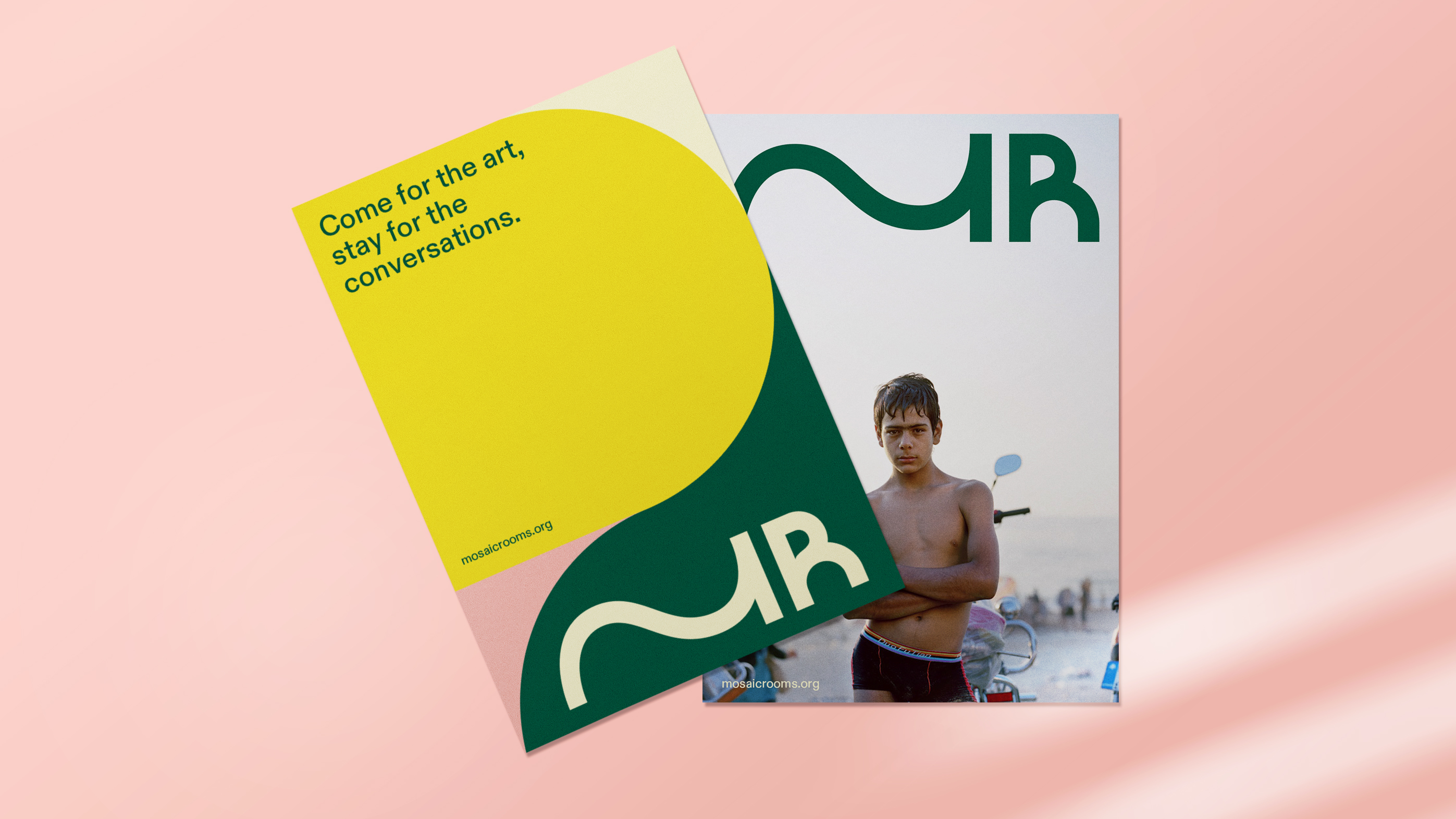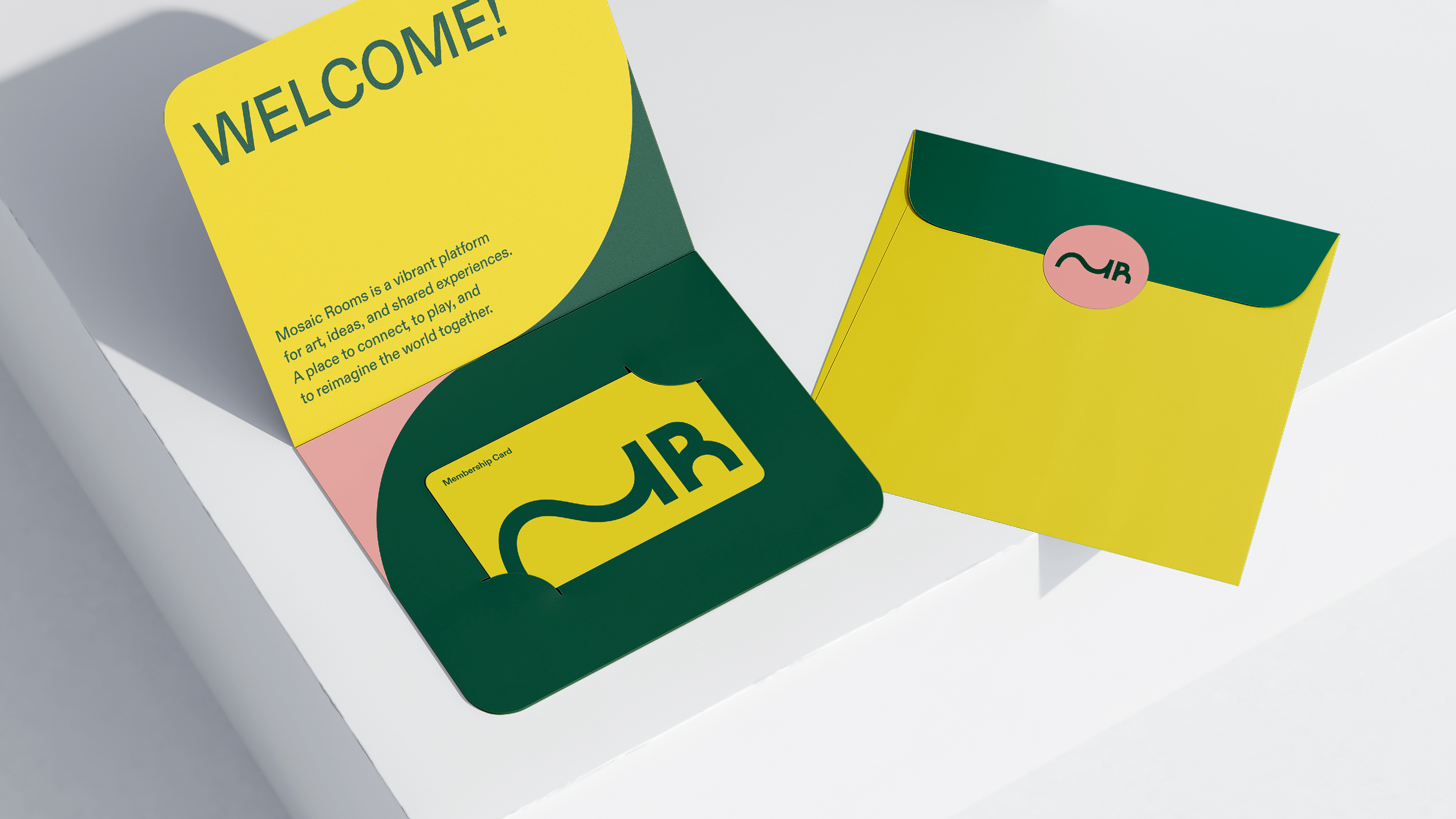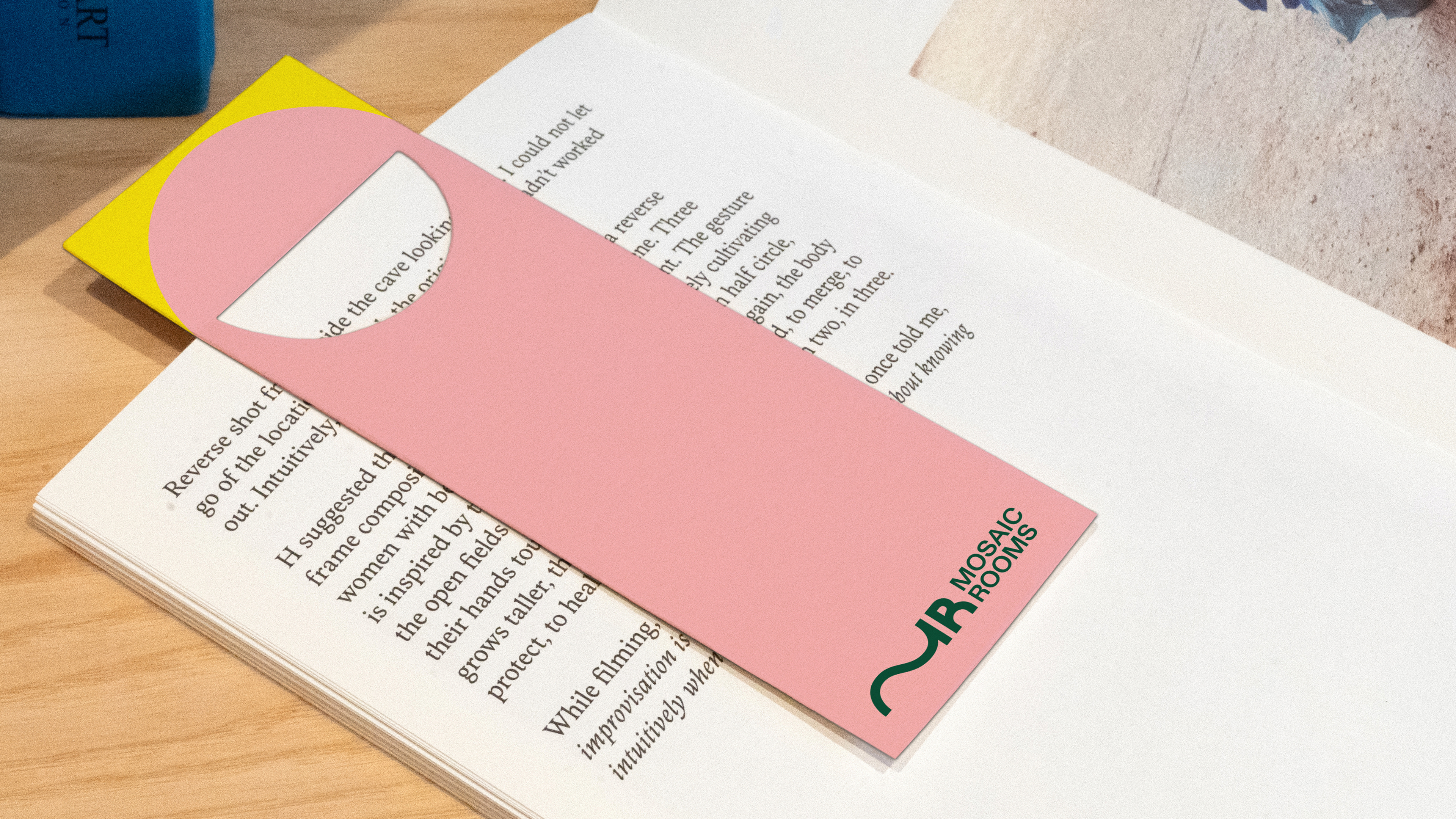 The identity extends across a full digital and spatial system, from website to signage, allowing The Mosaic Rooms to move beyond its physical space and into the wider cultural life of London.