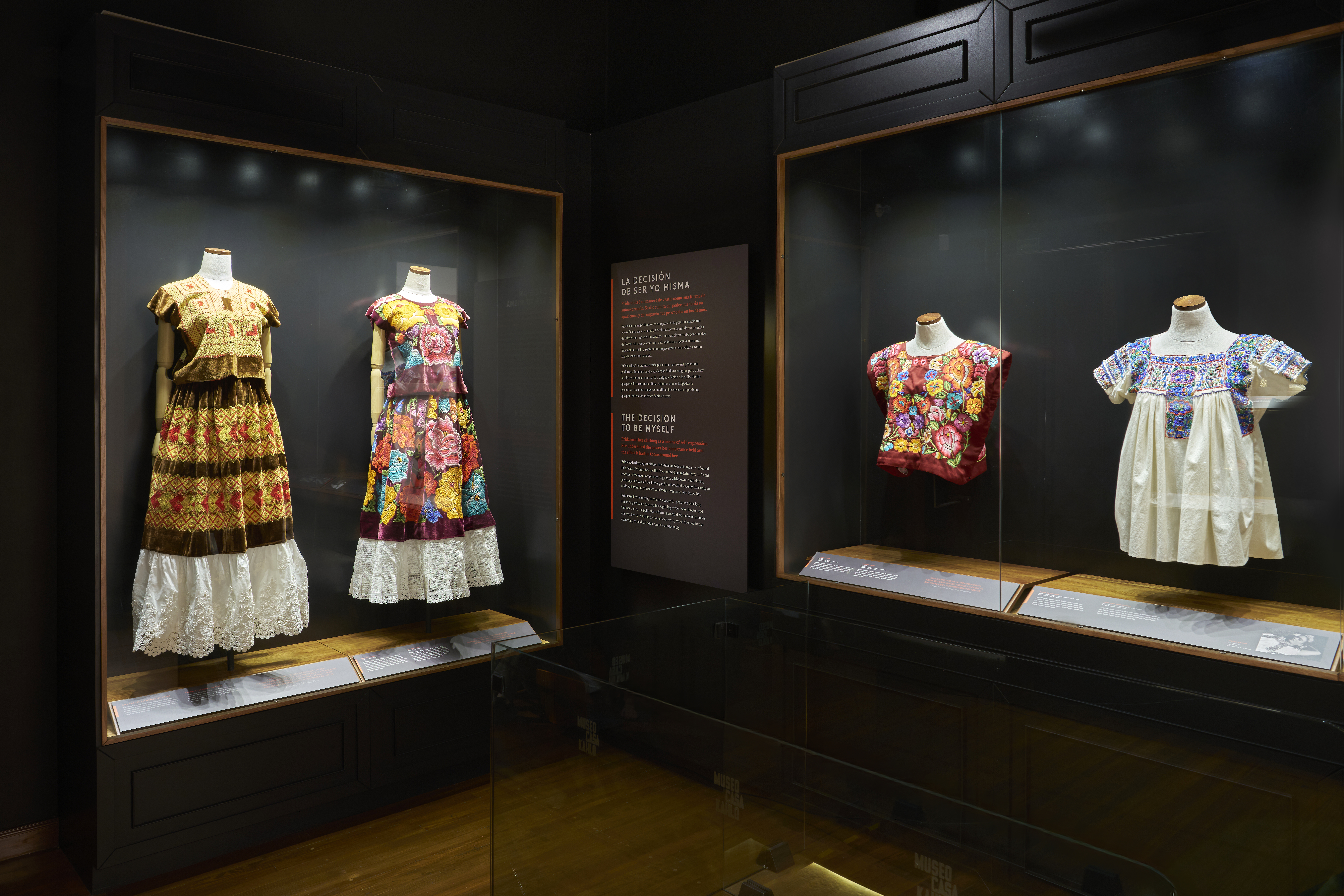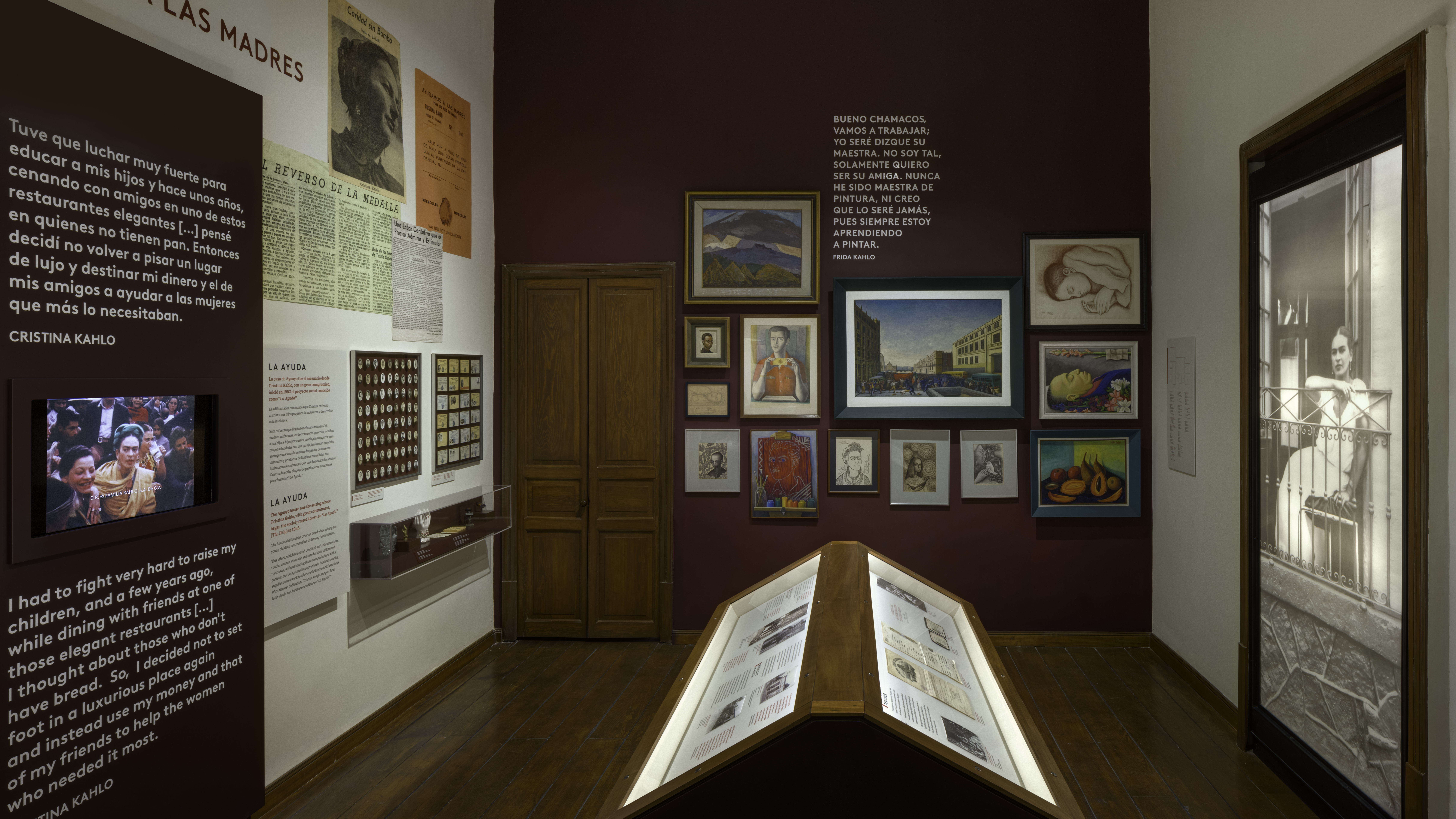 On view are Guillermo’s darkroom; the family kitchen—featuring the only mural Frida ever painted—the bathroom; and Cristina’s bedroom. Another gallery examines Frida’s distinctive sense of style, presenting traditional Mexican dress and jewelry from her collection. Additional displays explore her role as a teacher, with works by her pupils—known as Los Fridos—alongside drawings and archival footage of them painting a mural. The museum also recounts the story of La Ayuda (“The Help”), the nonprofit founded by Cristina to support single mothers in the neighborhood.