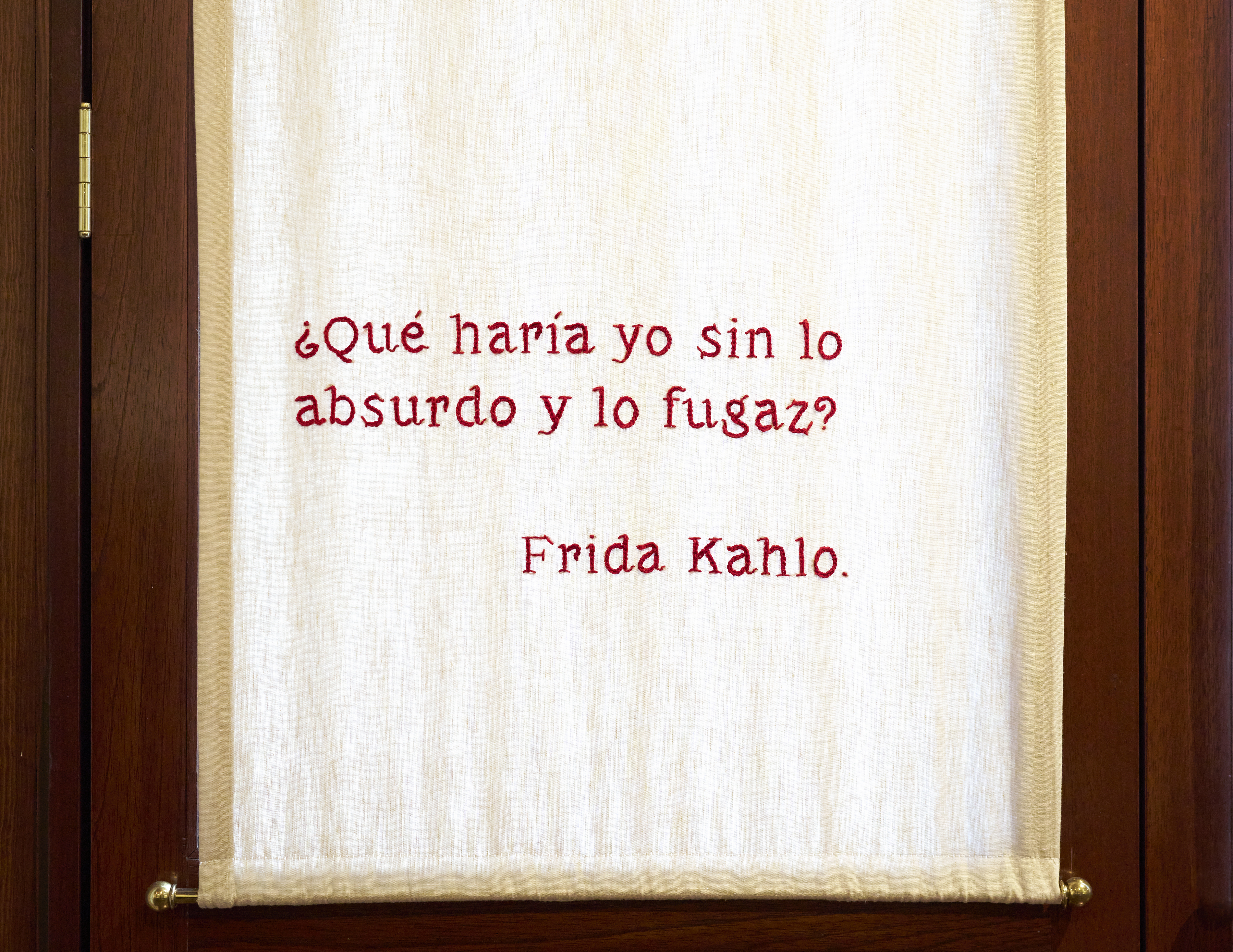 Signage, graphics, and interpretive elements are seamlessly integrated into the interiors of the residence in inventive ways that deepen the immersive experience without overpowering the space. Quotes from Frida are delicately embroidered onto curtains, while in the bathroom, a visual narrative is projected into the bathtub, inspired by Frida’s famous 1938 painting, What the Water Gave Me (Lo que el agua me dio).