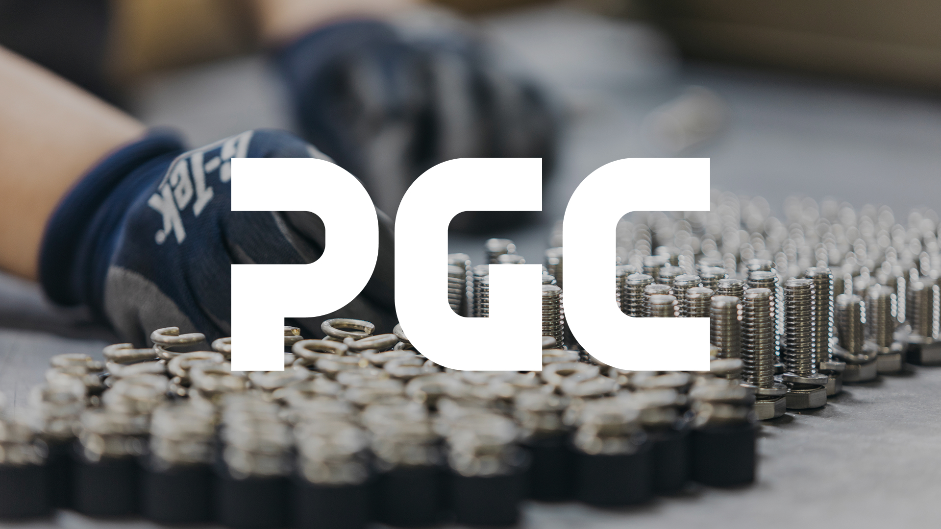 The identity centers on the shortened name PGC, built of custom letterforms with engineered shapes that reference the company’s componentry.