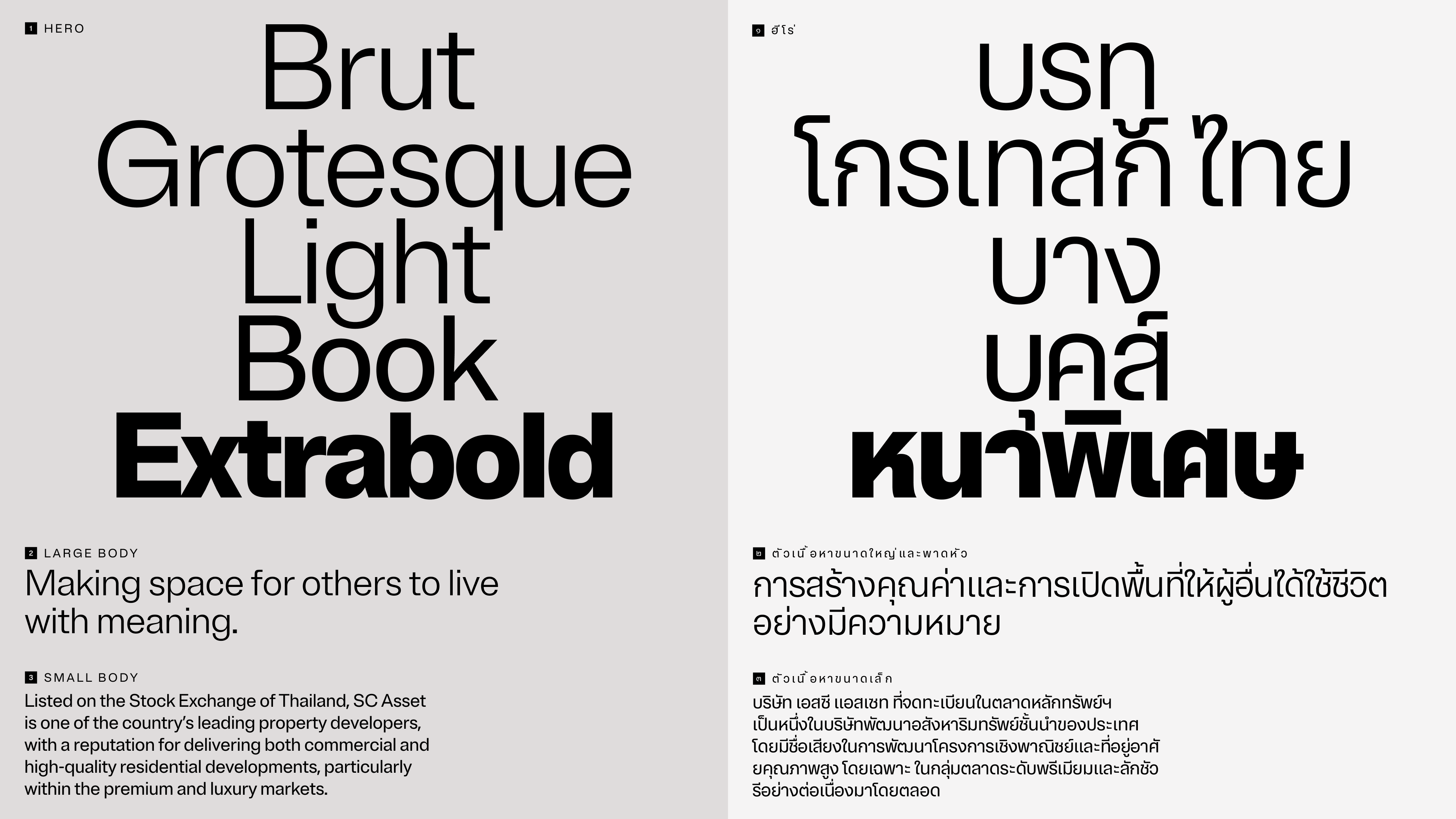A bespoke complementary Thai typeface was developed to sit seamlessly alongside the Latin script. Carefully matched in weight and character, both ensure the brand speaks with a unified voice across languages.