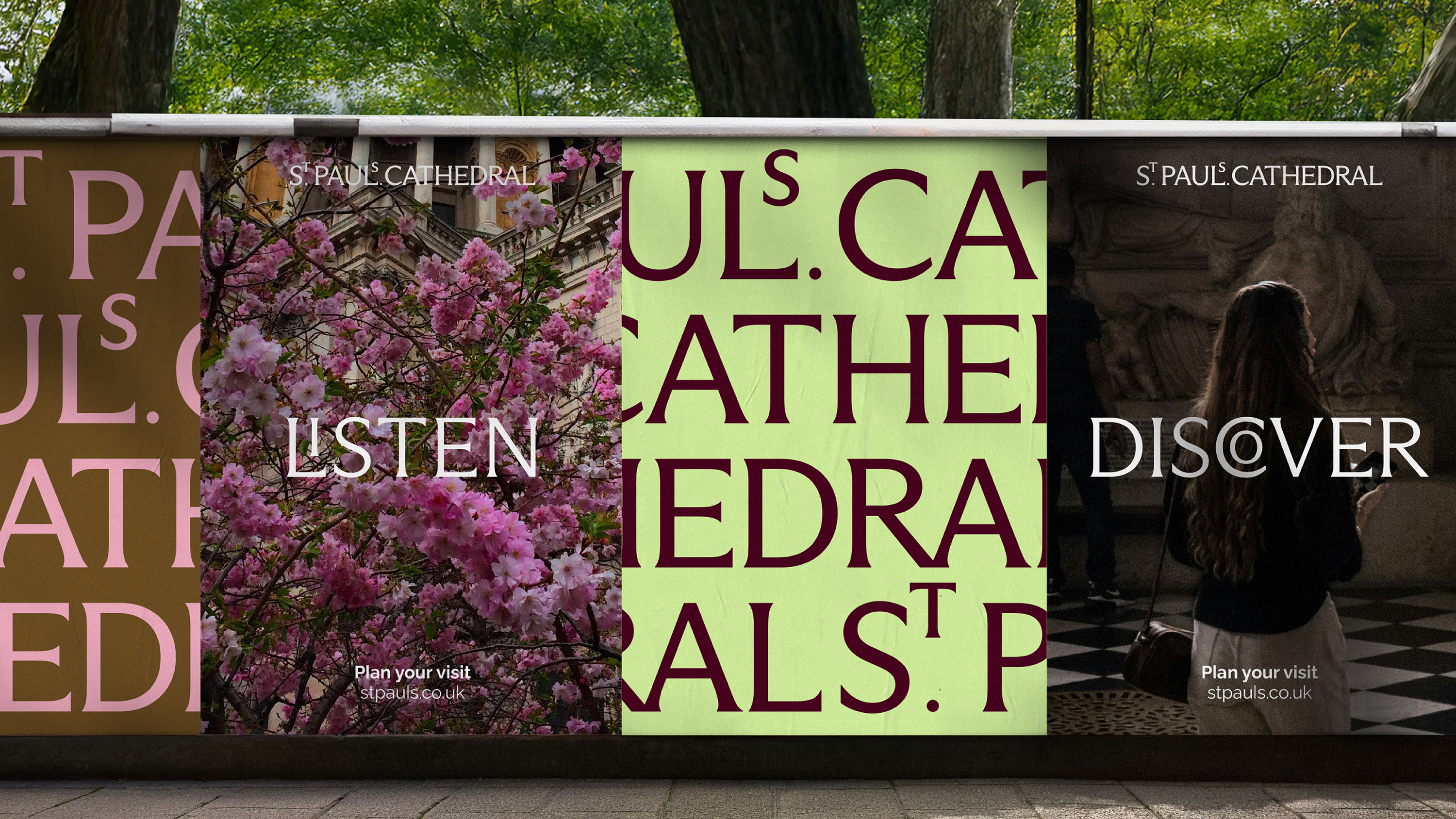 Shaping a sustainable home for learning, celebration, reflection and worship, after seeing its brand identities for The Book of Kells Experience and Jane Austen’s House, St Paul’s approached Pentagram to create a new visual identity to help it articulate its vision for the future: To inspire faith, welcome everyone and be a cathedral for London and the world.