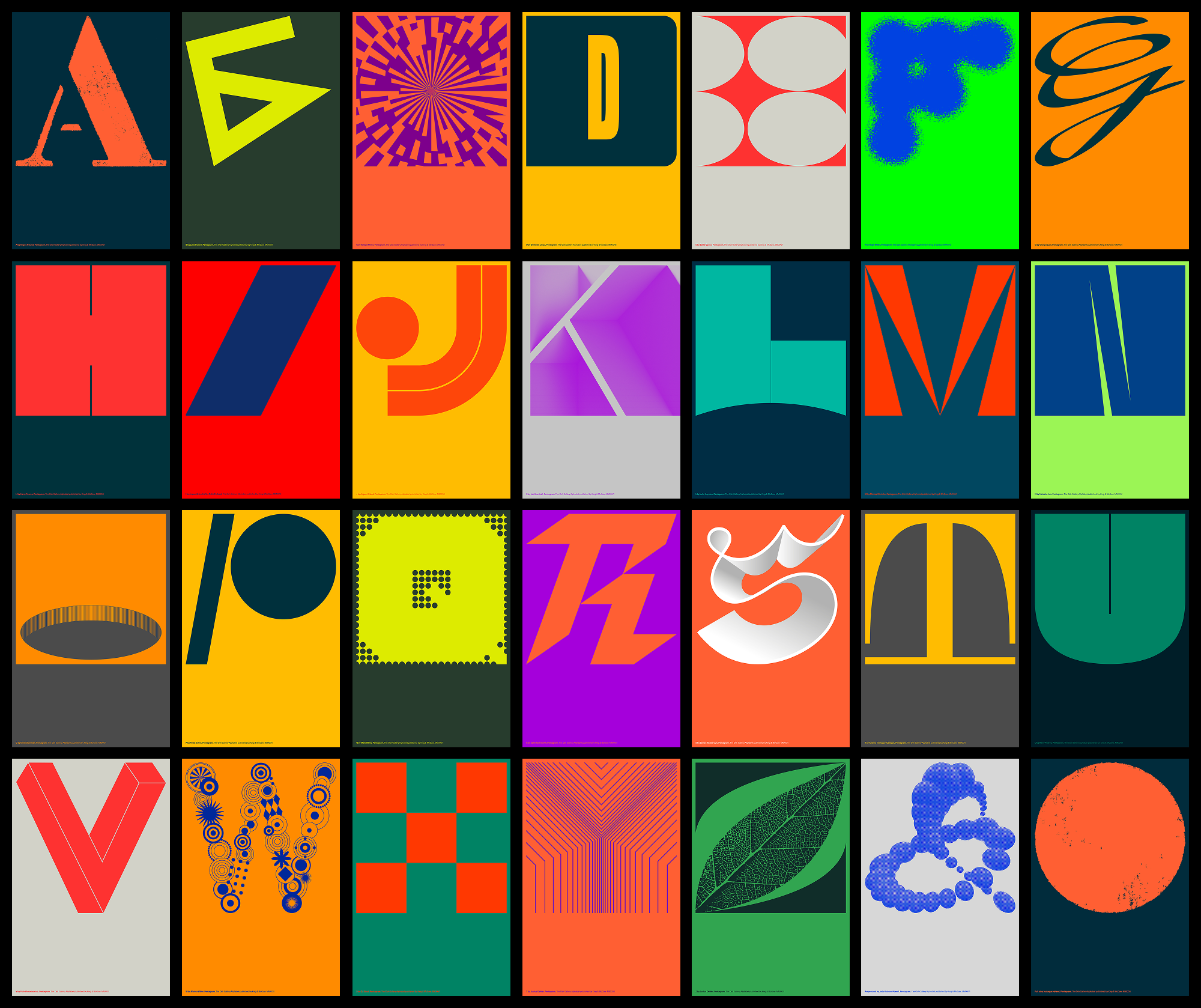 The latest exhibition at Osh Gallery showcases a brand new alphabet featuring original letters and symbols designed by 24 Pentagram Partners from the London, New York, Austin and Berlin offices.