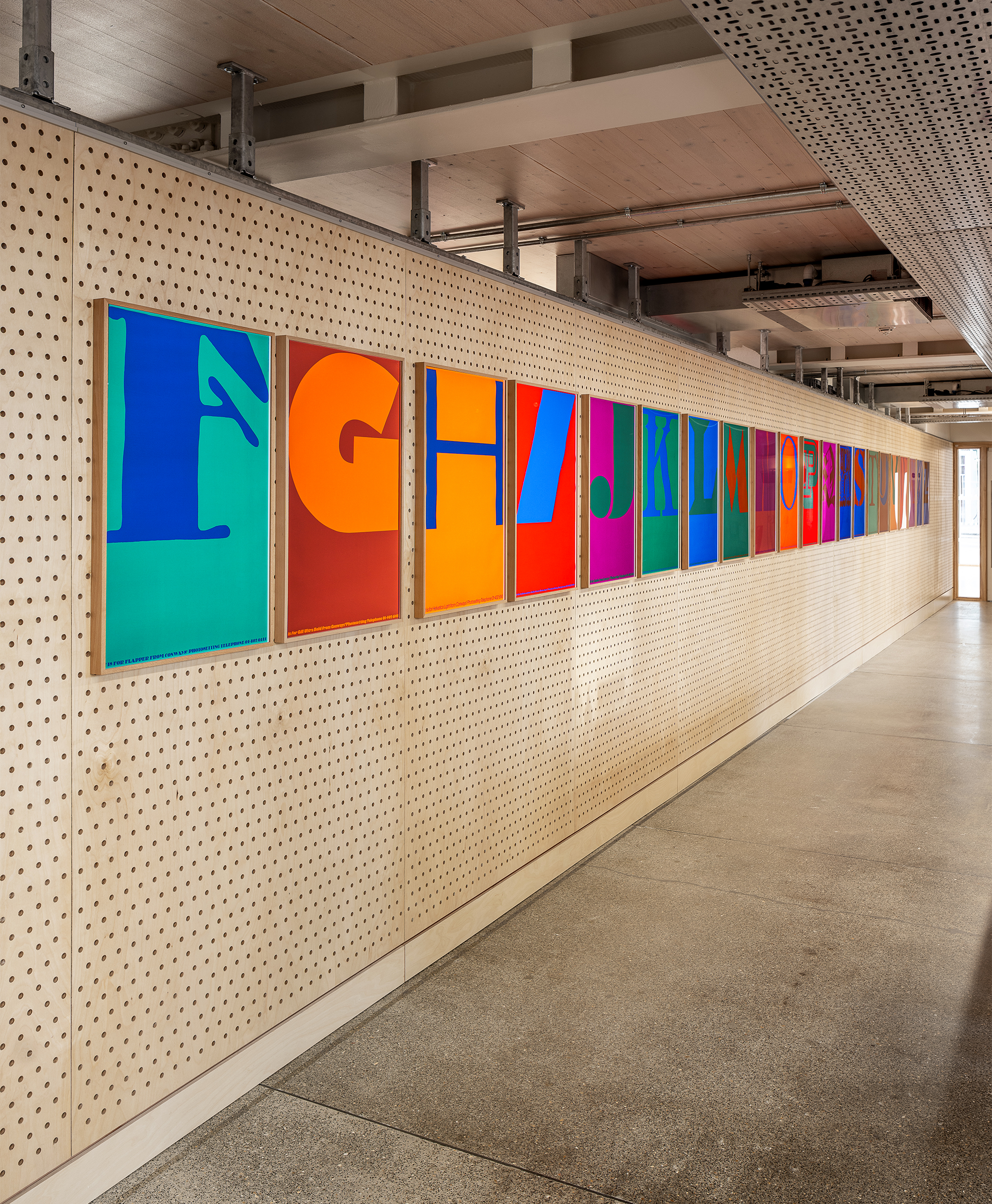Pentagram’s Angus Hyland explains: “Colin’s 26 original silkscreen posters are actually hanging in our studio at the moment, and they’ve been much admired, partly for that very unapologetic Seventies mix of fonts and colour. I mentioned to Gyr the idea of reimagining the project, largely because it felt like a good opportunity to create a permanent body of work for the Osh gallery: something we could hang between commissioned exhibitions, and also leave behind as a way of marking this moment for the partnership.