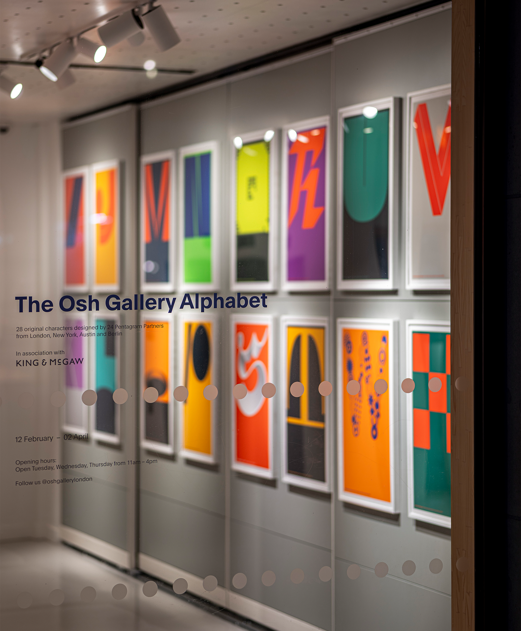 The Osh Gallery Alphabet will be on show until Thursday 2 April at Pentagram London’s gallery space in Islington, London N1.